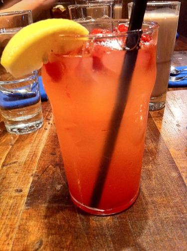 Notice the big red blogs floating in the lemonade? Those are fresh strawberries macerating in the lemonade! yum!